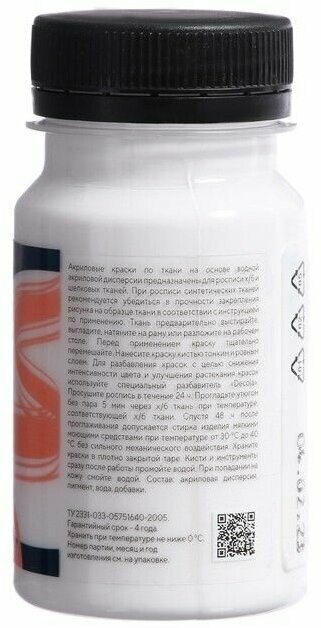 Краска акриловая по ткани Decola банка 100 мл, цвет: белый (4127104) информация: