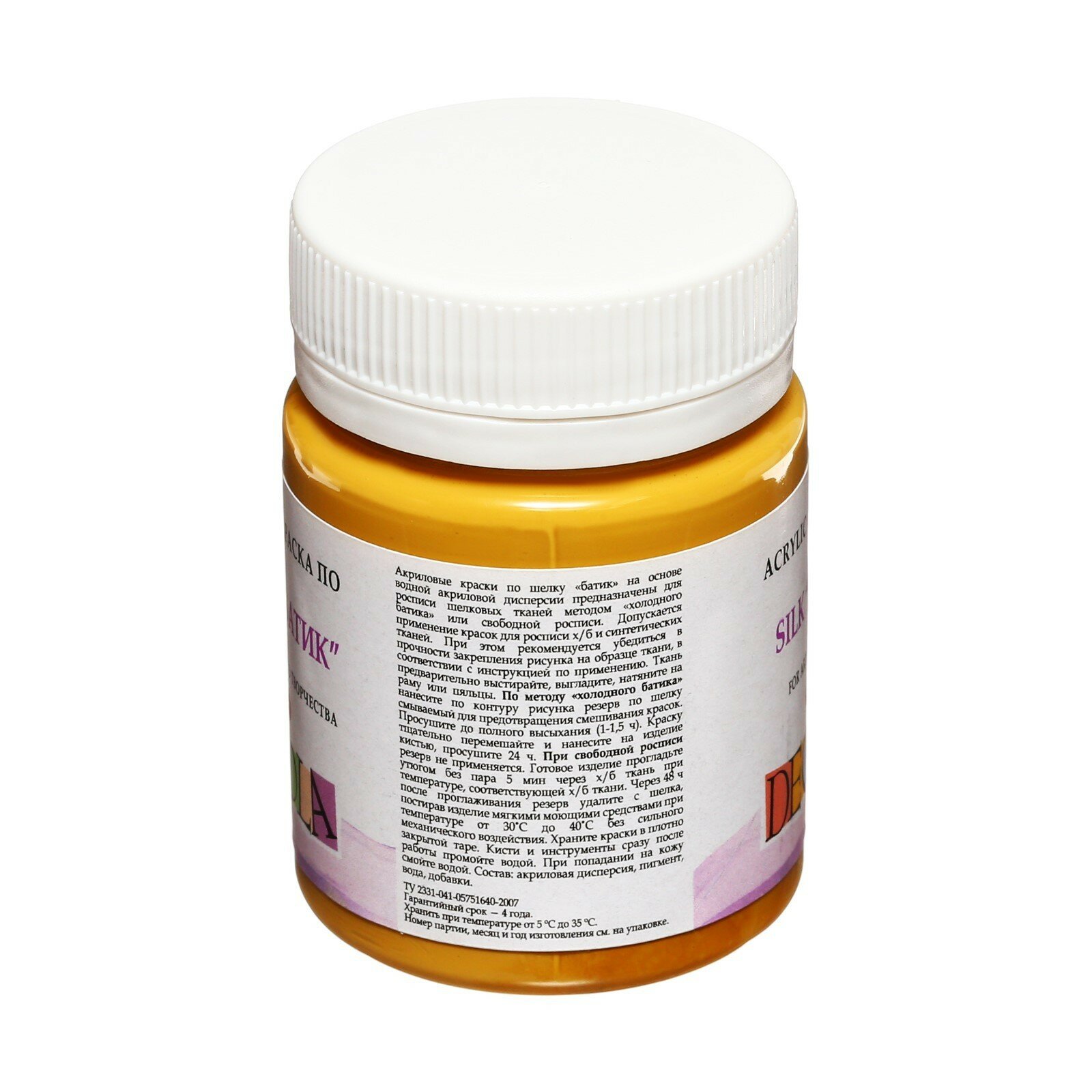 Краска по шелку "Батик", банка 50 мл, ЗХК Decola, Желтая темная 4428221 (акриловая на водной основе)
