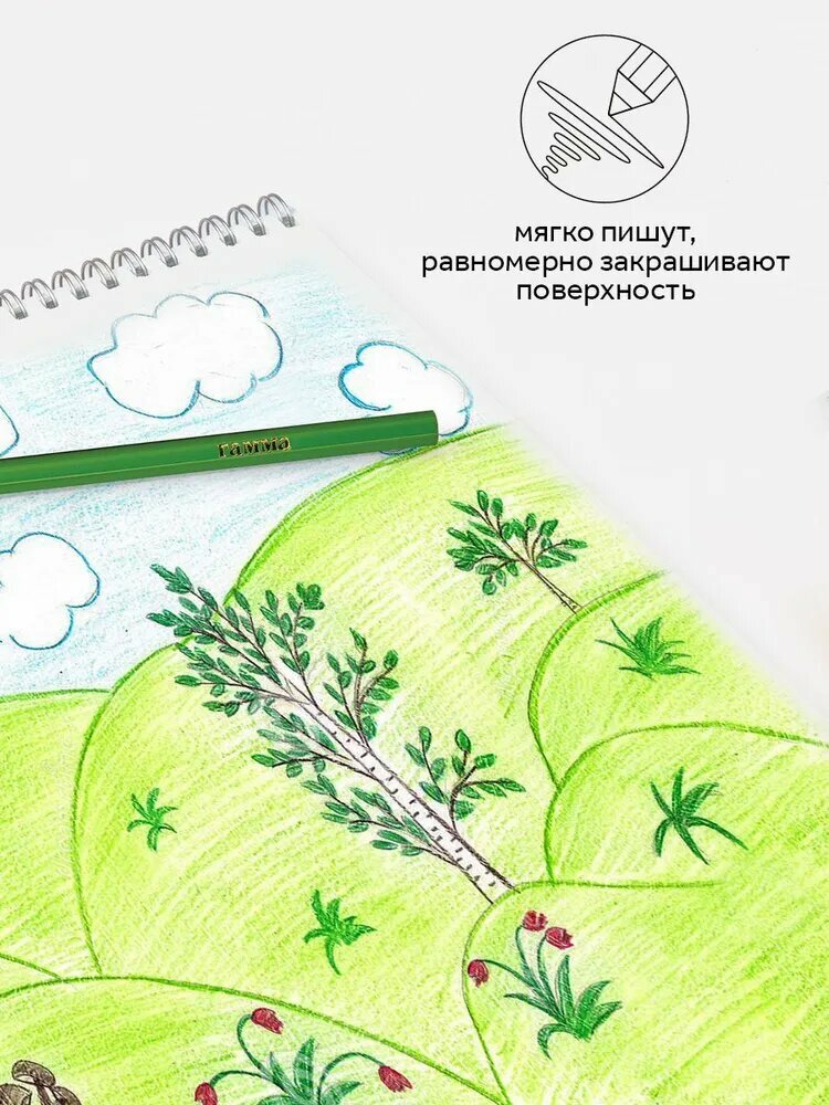 Цветные карандаши для школы 24 цвета для рисования мягкие / Школьный набор цветных карандашей Гамма "Классические" информация: