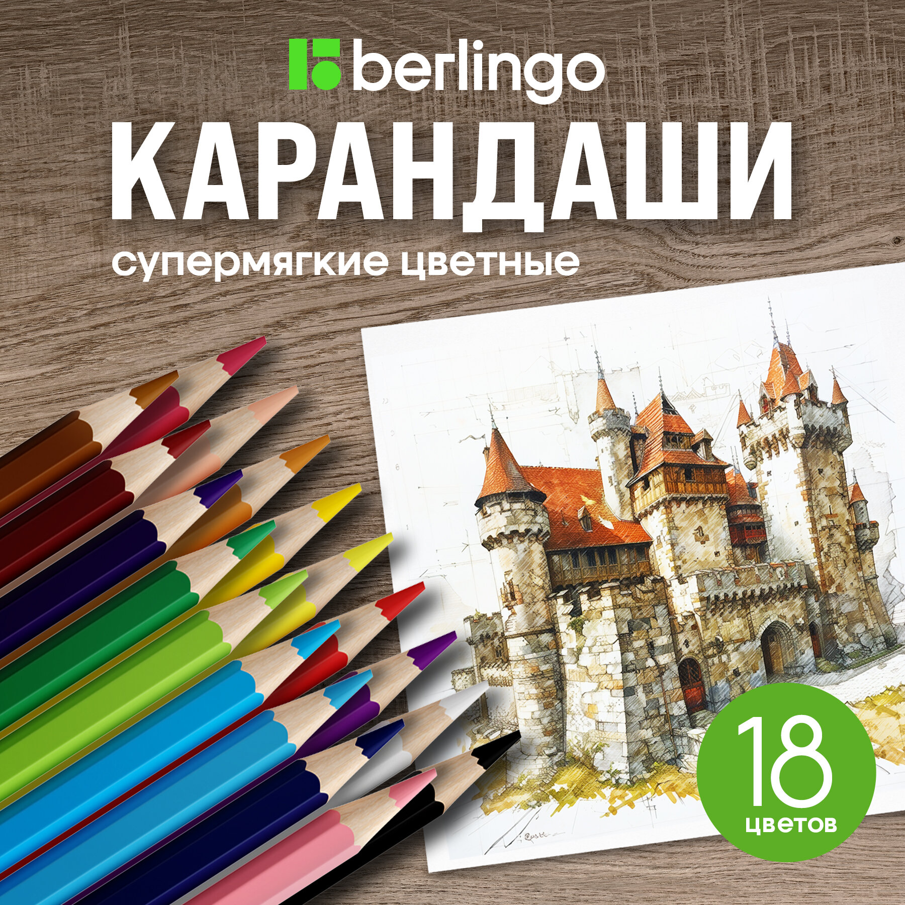 Цветные карандаши для школы 18 цветов, шестигранные / Набор цветных карандашей для рисования школьный Berlingo "SuperSoft. Замки" информация: