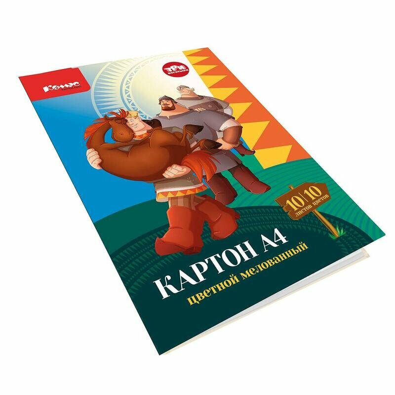 Картон цветной Комус Три богатыря 10л 10цв А4 мелован.папка 1843425 информация: