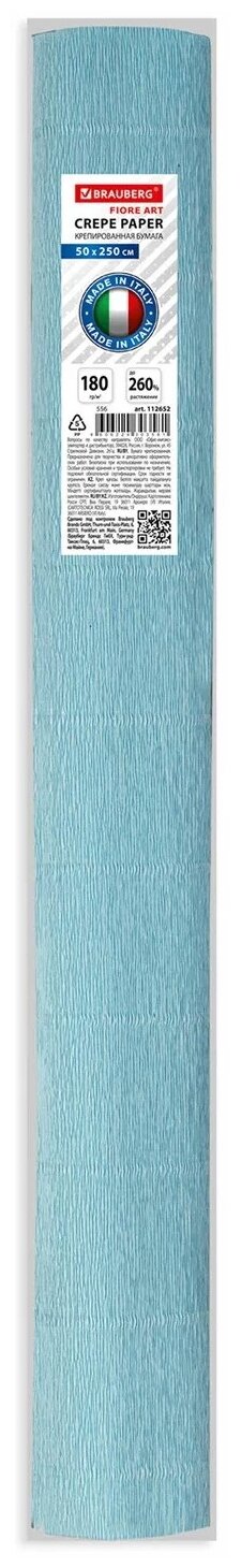Бумага гофрированная/креповая (италия) 180 г/м2, 50х250 см, небесная (556), BRAUBERG FIORE, 112652 информация: