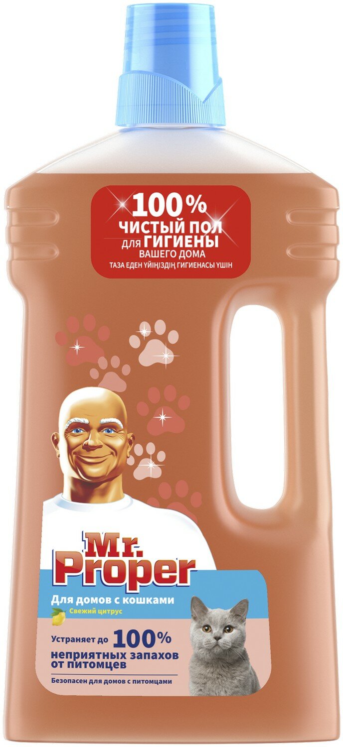 MR PROPER Моющая жидкость для полов и стен для домов с кошками Свежий Цитрус 1000 мл