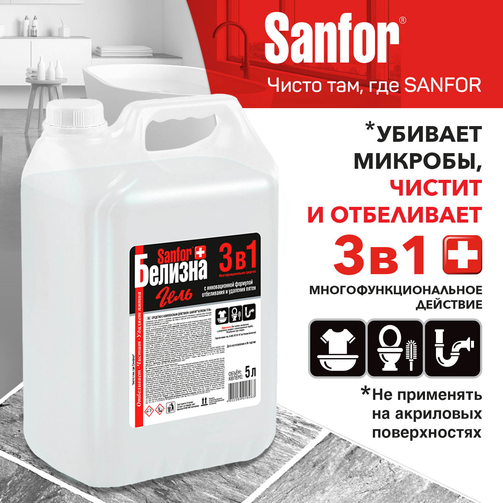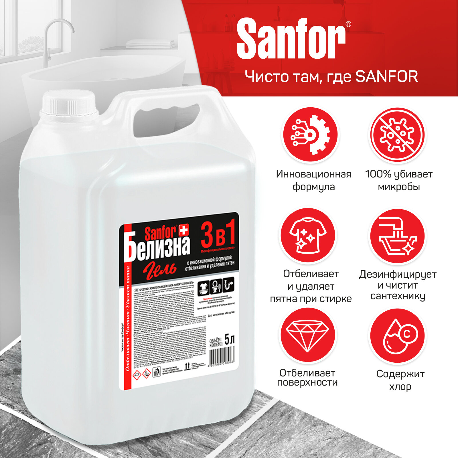 Sanfor гель Белизна 3 в 1, 5 л информация: