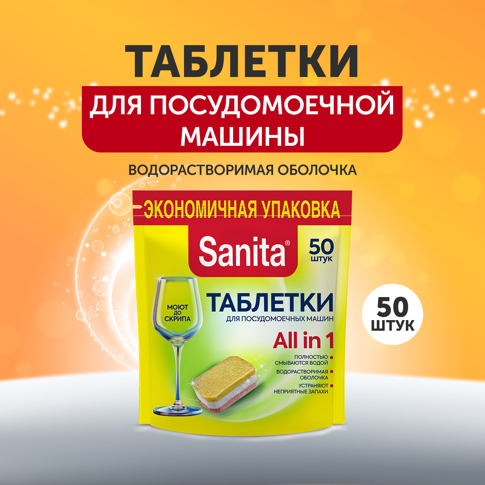 Таблетки SANITA для посудомоечных машин, 50 штук (комплект из 2 шт) 2 922 ₽