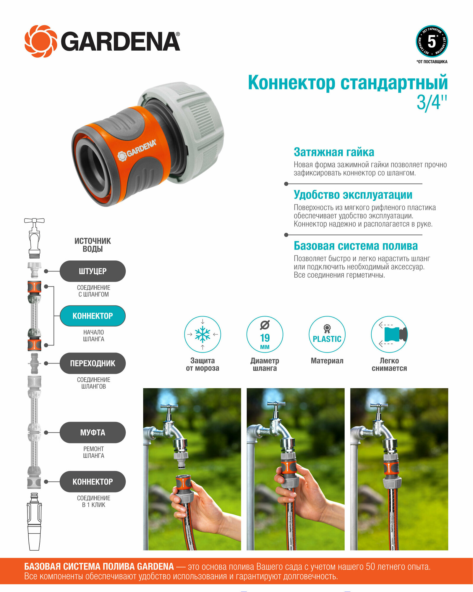 Коннектор стандартный 3/4" (19 мм.) GARDENA информация: