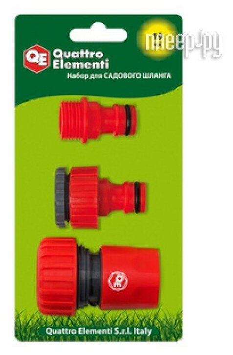 | Комплектация | Набор поливочный QUATTRO ELEMENTI 3 предмета. Соединитель 3/4"-1шт, штуцер 1/2" и 3/4", мягкий пластик |