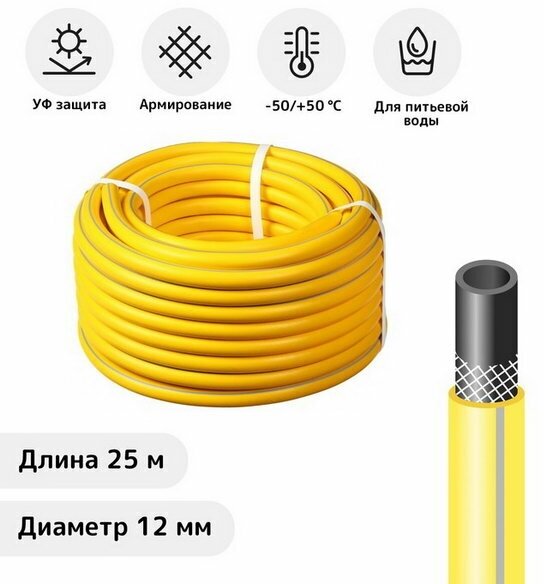 Шланг поливочный морозостойкий, ТЭП, 12 мм, 25 м, армированный, EXPERT AquaProf информация:
