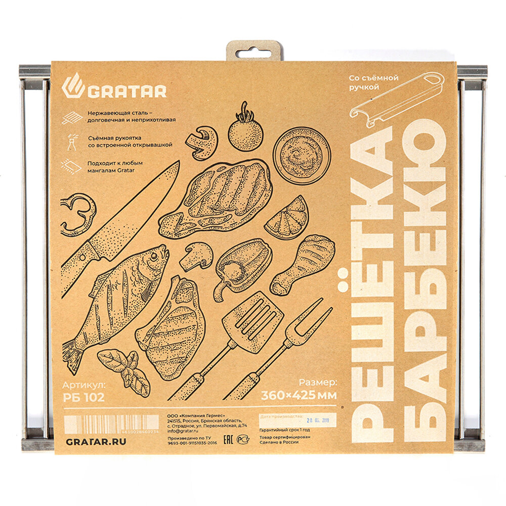 Решетка барбекю GRATAR нержавеющая сталь, съемная ручка РБ-101