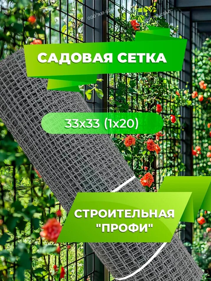 Садовая сетка квадратная 33х33 (1 х20) Строительная "профи" серый . информация: