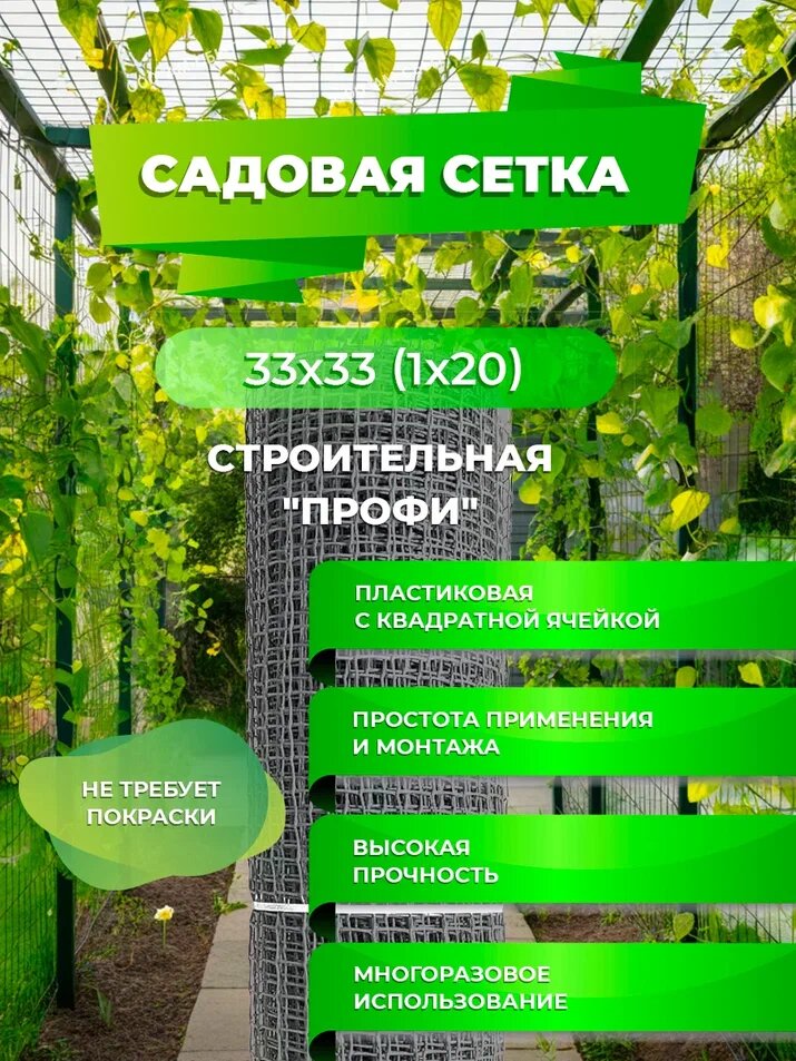 10 цен на Садовая сетка квадратная 33х33 (1 х20) Строительная "профи" серый .