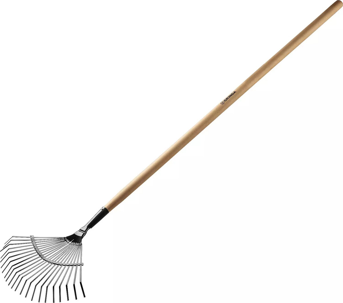 Веерные садовые грабли с деревянным черенком GRINDA 22 плоских зубца, 440х260х1500 мм 39593