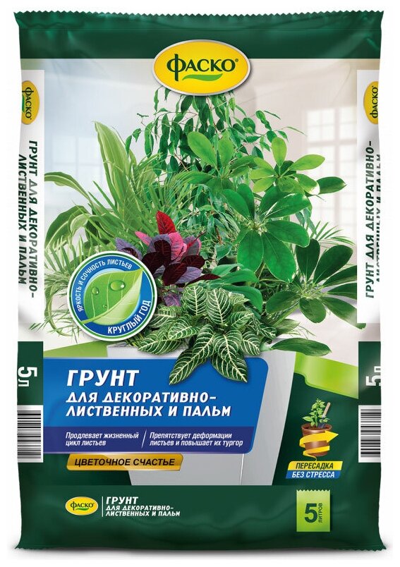 Грунт Фаско Цветочное счастье для декоративно-лиственных растений и пальм 5 л. информация: