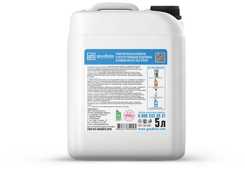 Очиститель бассейнов и искусственных водоемов, GOODHIM 550 ECO без хлора, 5 л. 50095 информация: