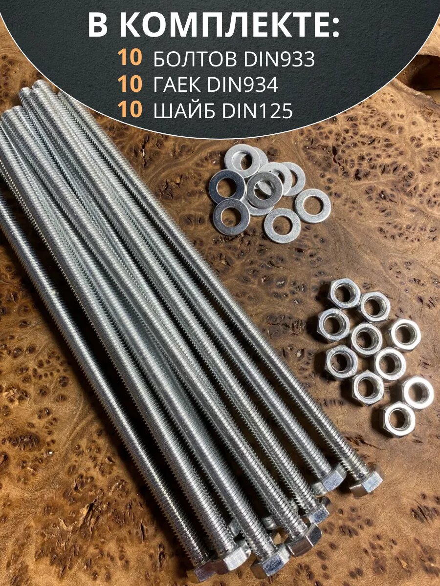 Болт 8х200 мм с гайкой и шайбой ОЦ DIN933 к.п.8.8 (10 шт.) информация:
