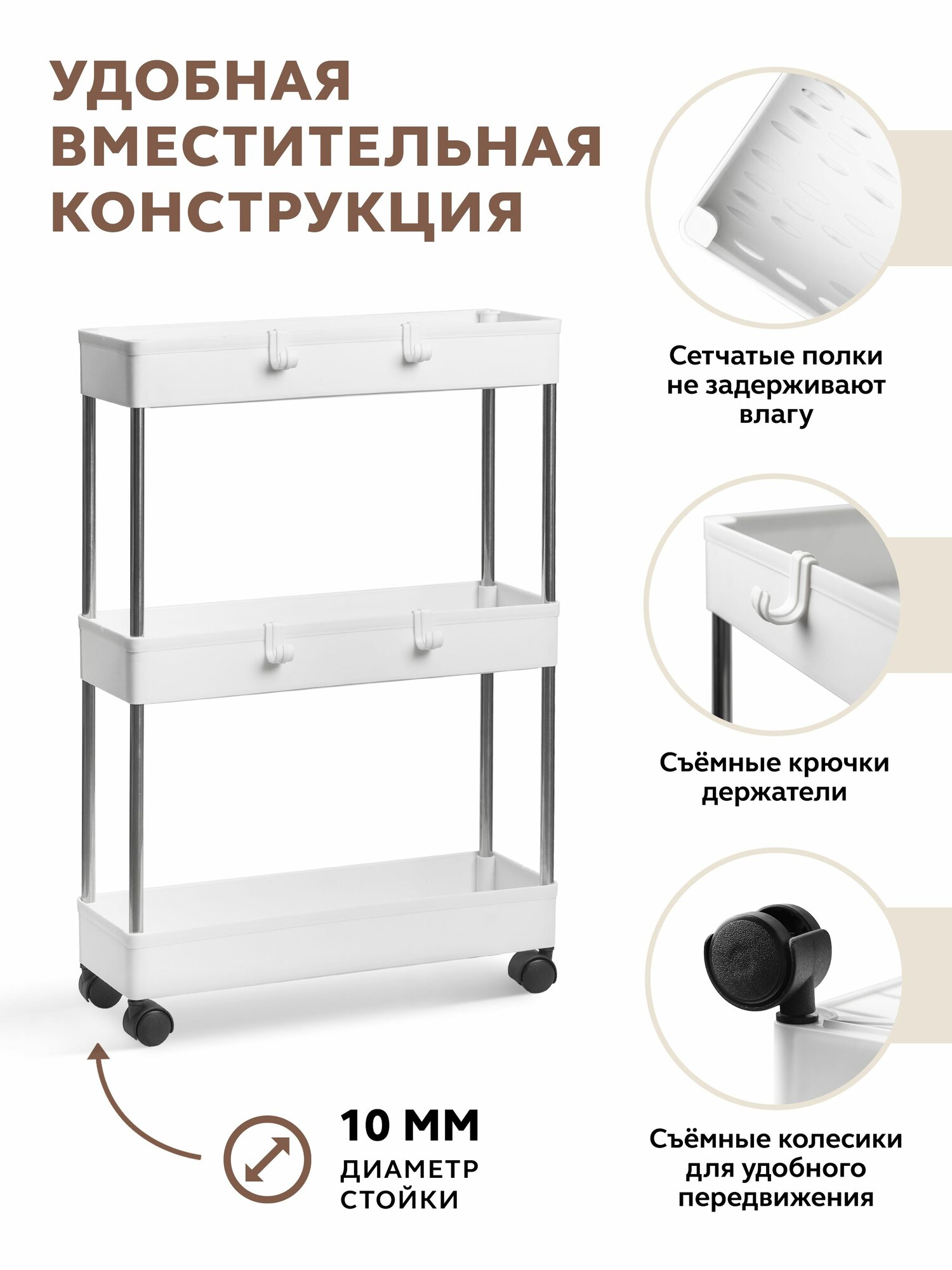 Этажерка органайзер GASTRORAG GR-750-3W узкая пластиковая, на колесиках в ванную 906 ₽