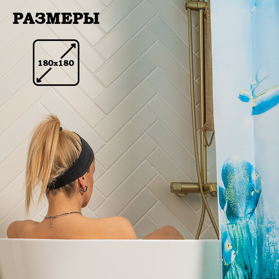Штора для ванны Доляна «Рыбки» 180×180 см, материал EVA информация: