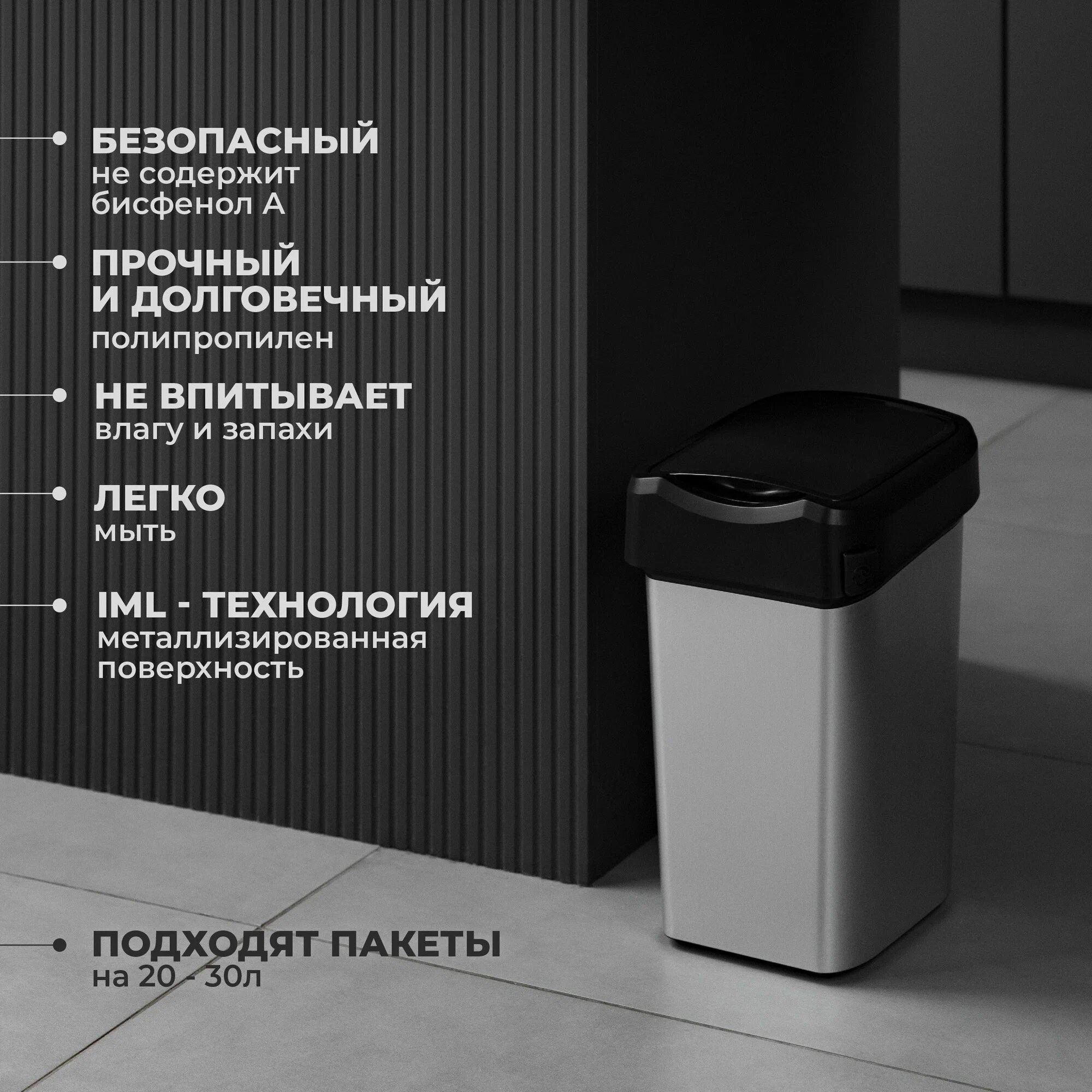 Контейнер для мусора SMART BIN 10л,поворотная крышка, крепление для пакетов,серый 434214711 Бытпласт (арт. 845523)