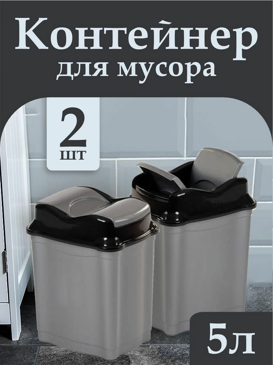 Контейнер elfplast "Proff" для мусора 5л 2шт, серый/черный 477 информация: