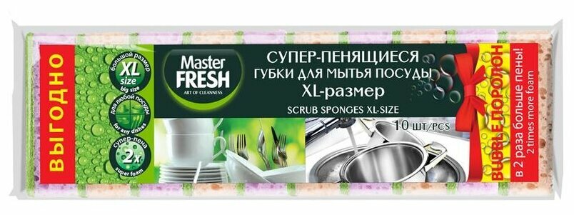 Губка для мытья посуды Master FRESH XL 100х70х33мм 10шт/уп