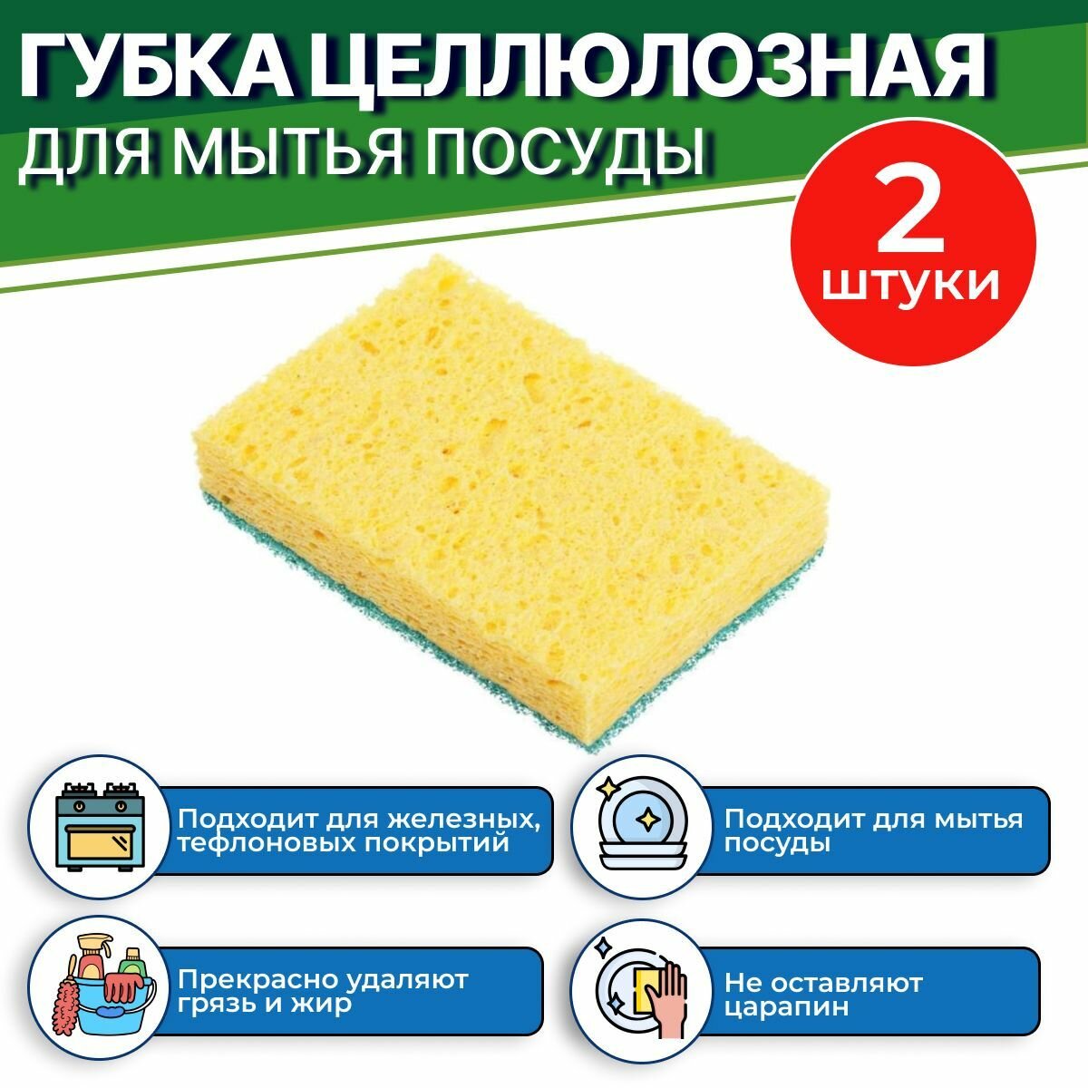 Губка для мытья посуды целлюлозная Paclan, 2 шт. информация: