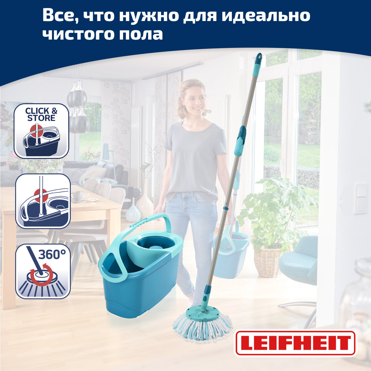 Набор для уборки Leifheit Clean Twist швабра и ведро с отжимом информация: