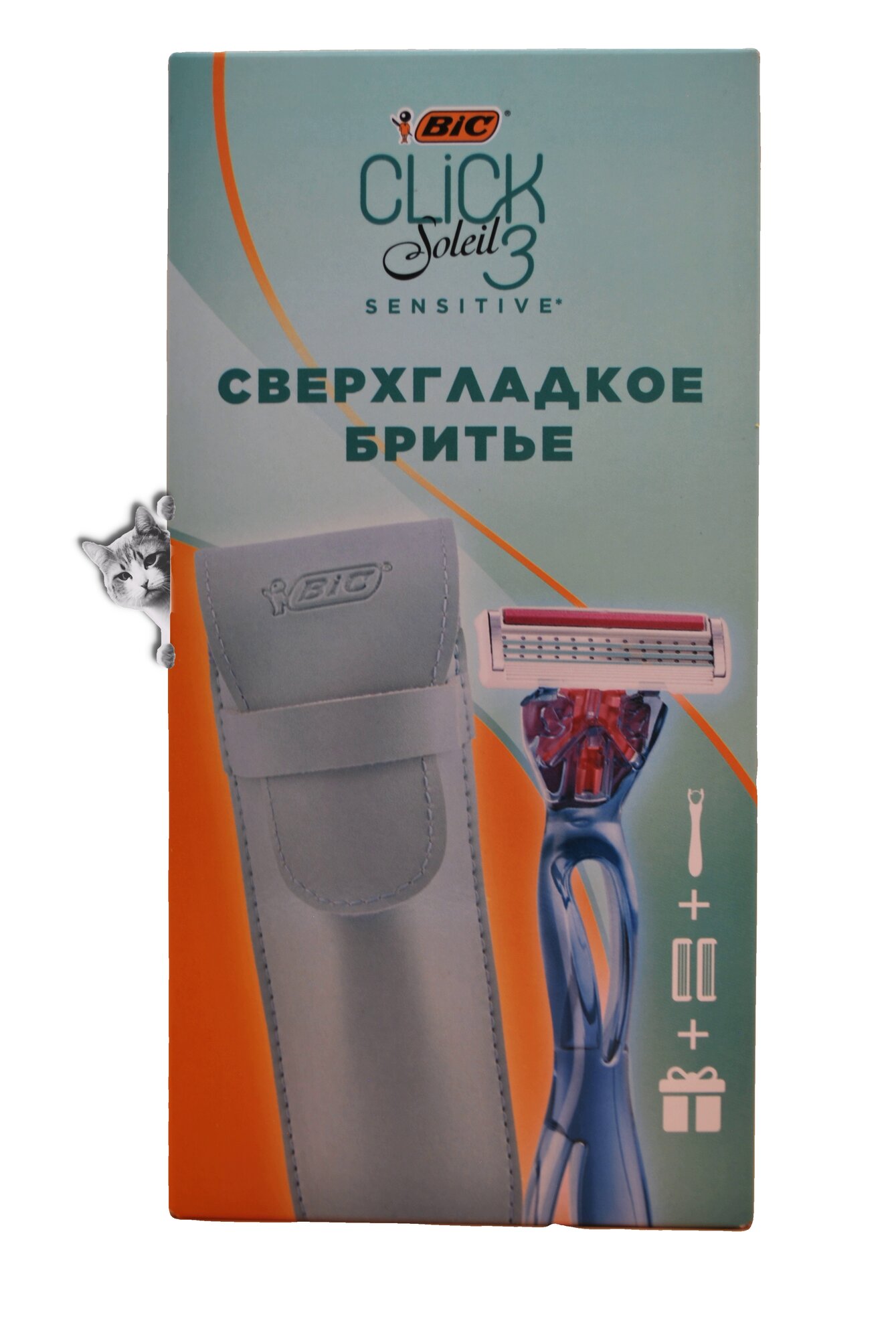 Отзывы на Женская бритва BIC Click 3 Soleil Sensitive 2 сменные кассеты для бритья + чехол для бритвы в подарок Набор БИК