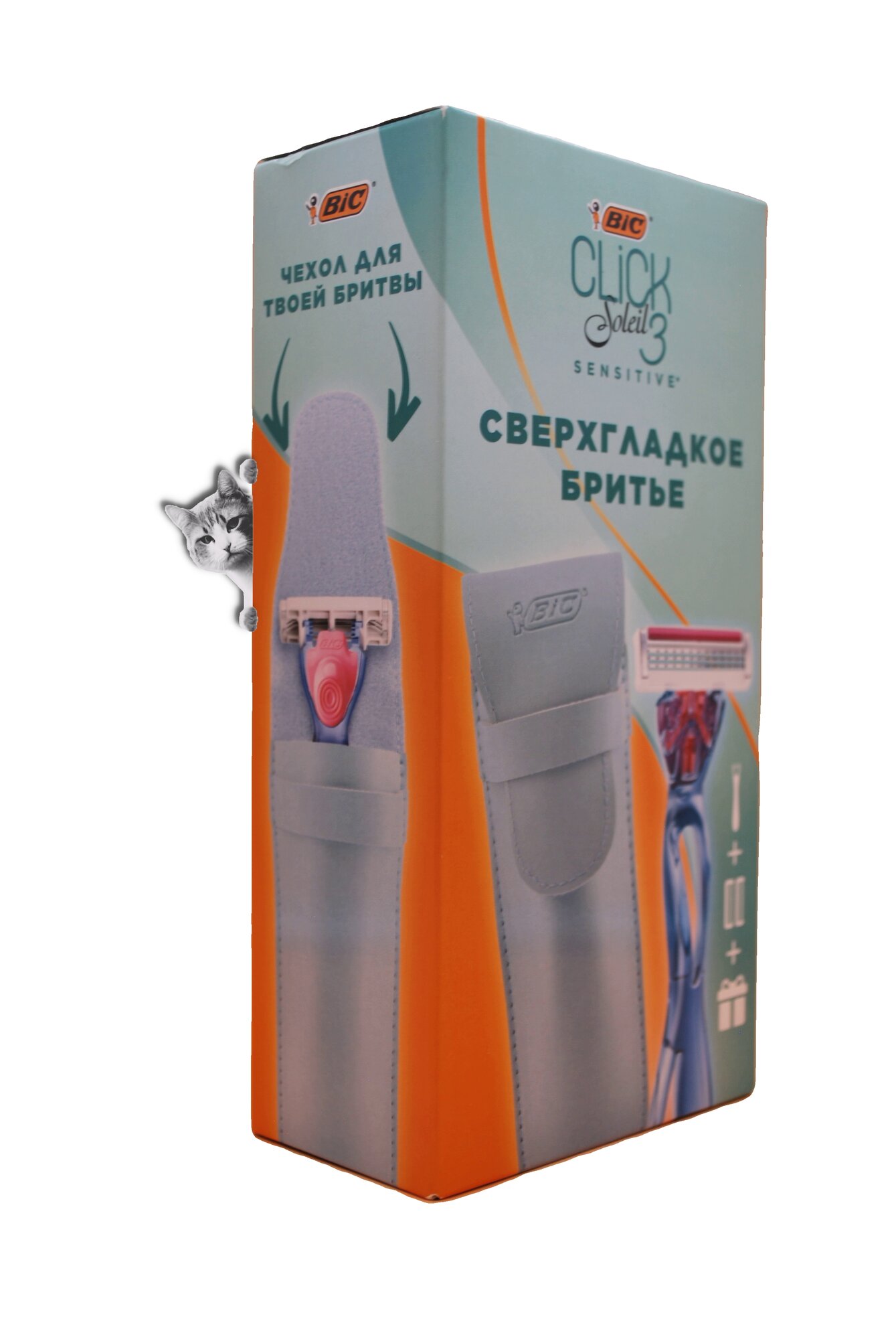Женская бритва BIC Click 3 Soleil Sensitive 2 сменные кассеты для бритья + чехол для бритвы в подарок Набор БИК информация: