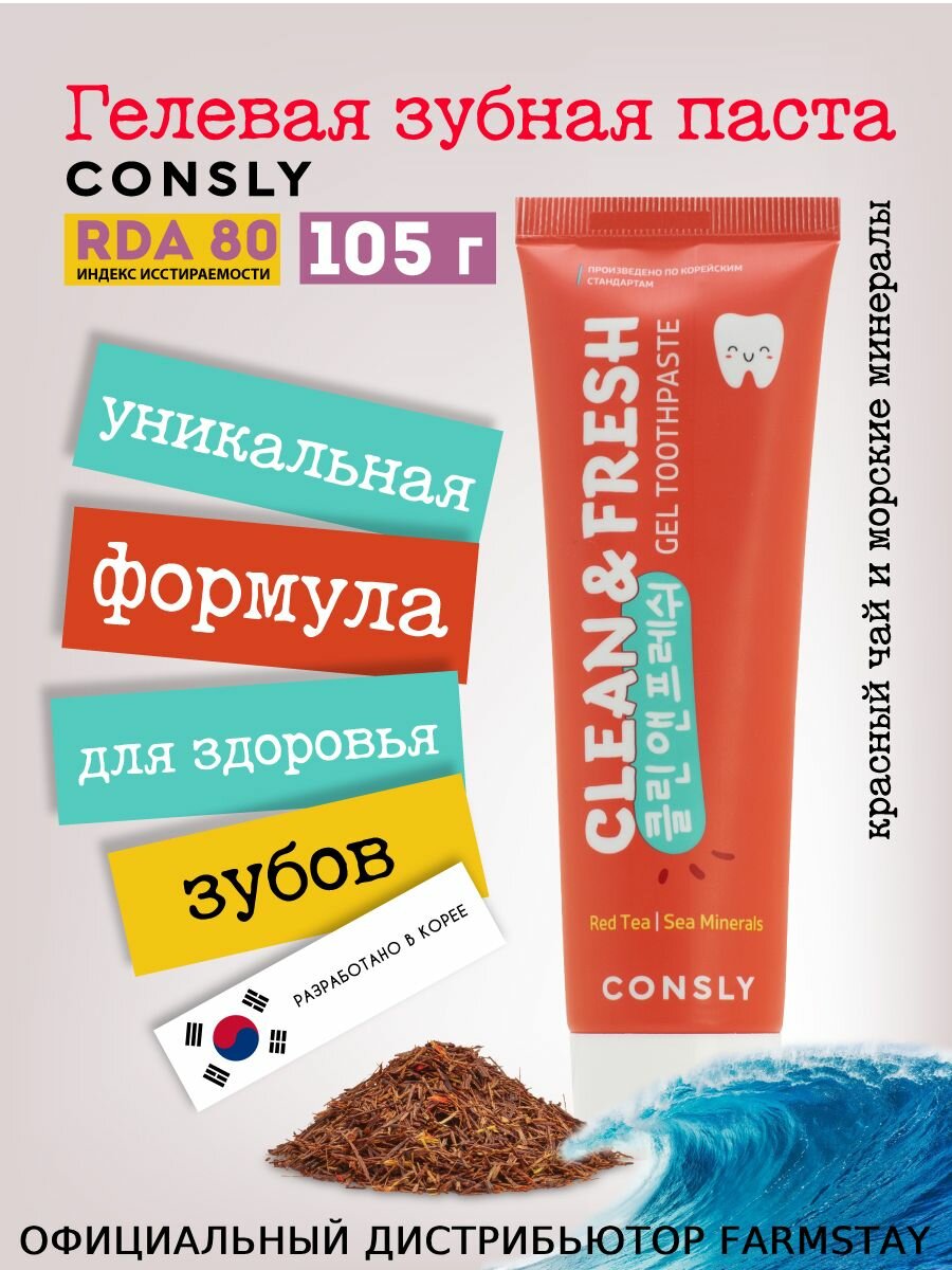 Гелевая зубная паста Consly Clean&Fresh с экстрактом красного чая и морскими минералами, 105 г