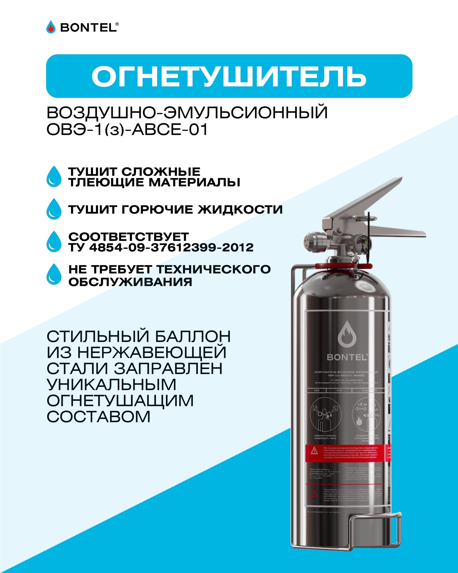 Воздушно-эмульсионный огнетушитель BONTEL ОВЭ-1(з)-ABСE-01 информация: