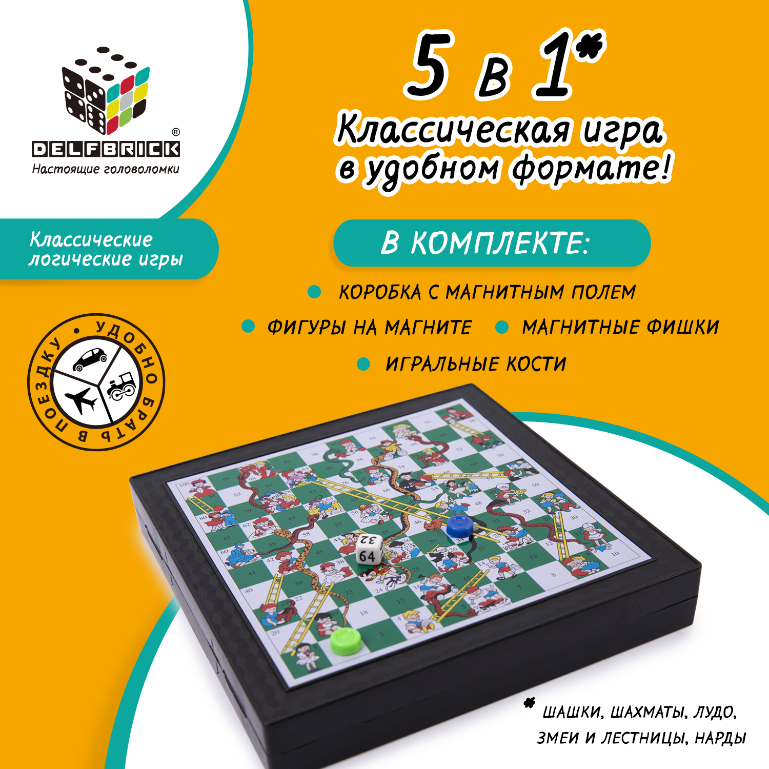 10 цен на Магнитная игра 5 в 1 "DELFBRICK" DLN-03 Шашки, шахматы, лудо, змеи и лестницы, нарды