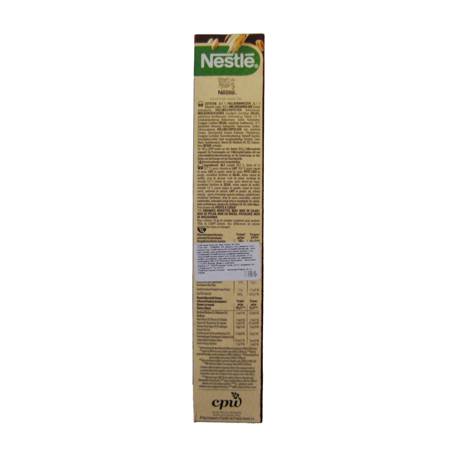 | Состав | пшеница цельнозерновая 27,4% / сахар / мука рисовая / масло подсолнечное / крахмал пшеничный / шоколад 5,8% (какао обезжиренное / сахар / масло какао) / молоко сухое обезжиренное / крупа кукурузная / карбонат кальция / сироп глюкозы / эмульгатор (лецитины). ) / сладкая сыворотка / соль / масло / мальтодекстрин / натуральные ароматизаторы / карамельный сироп / разрыхлитель (карбонат натрия) / краситель (каротин) / антиоксидант (экстракты с высоким содержанием токоферола) / железо / ниацин / пантотеновая кислота / витамин B6 / рибофлавин. (витамин В2) / фолиевая кислота. Может содержать орехи. Хранить в прохладном и сухом месте. |