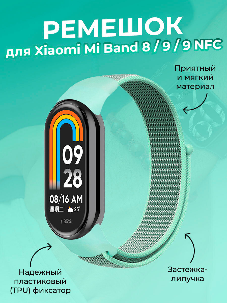 10 цен на Ремешок с нейлоновой петлей на липучке для Xiaomi Mi Band 8, чайно-зеленый