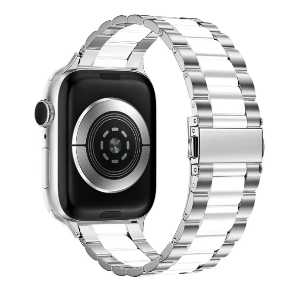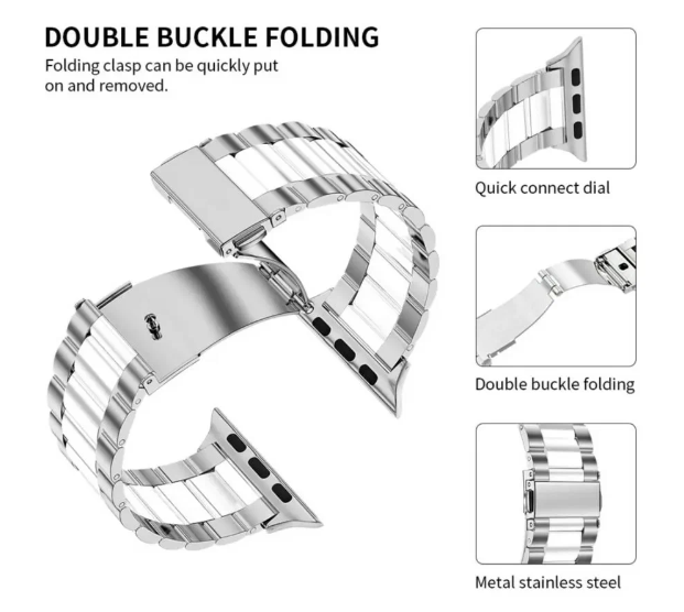 Отзывы на Блочный ремешок для Apple Watch 38-40-41 mm, Series 1-9, SE / Сменный металлический браслет для смарт часов на застежке Эпл Вотч 38-41 мм серебристо-белый