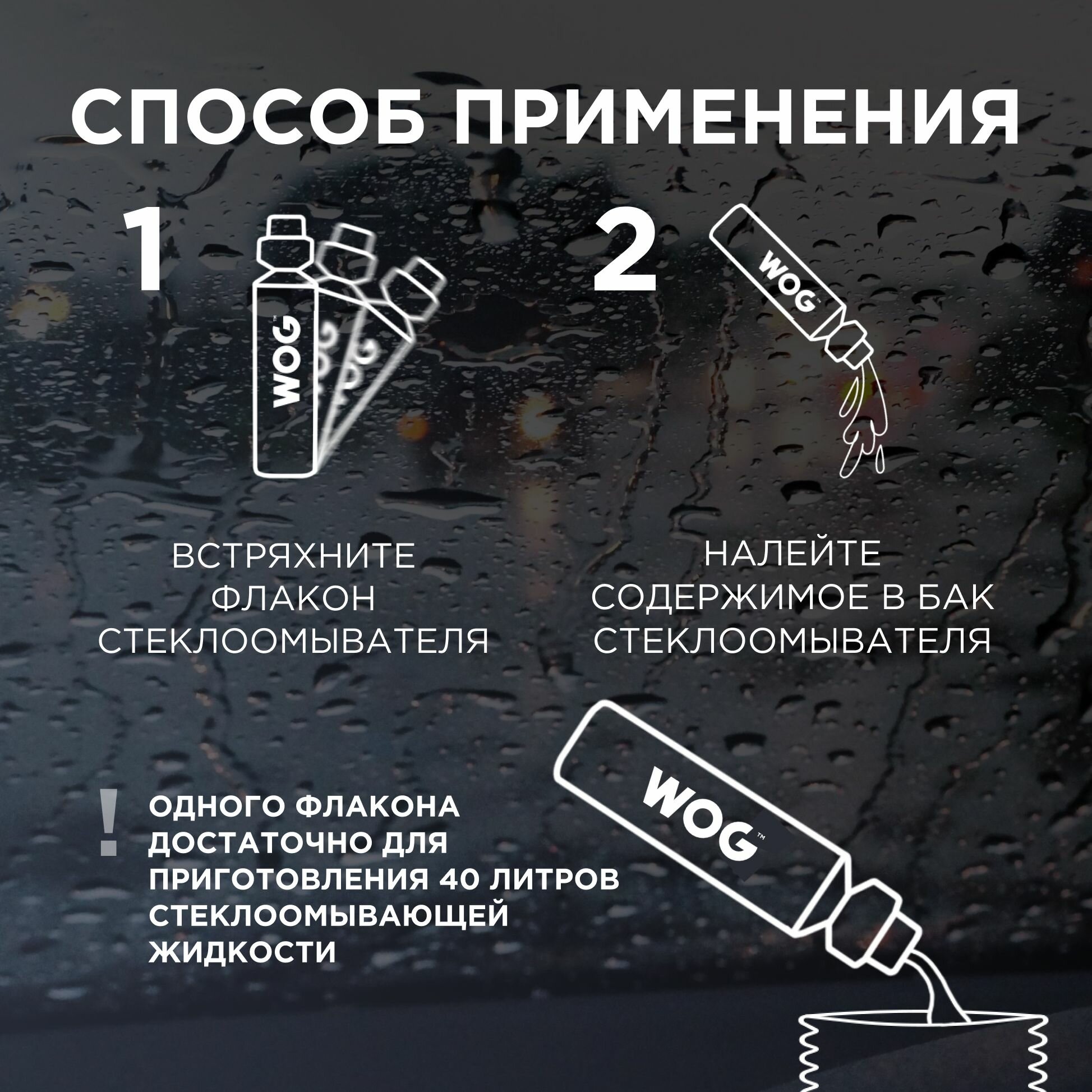 Летний ультраконцентрат стеклоомывающей жидкости на 40 литров WOG, 270 мл информация: