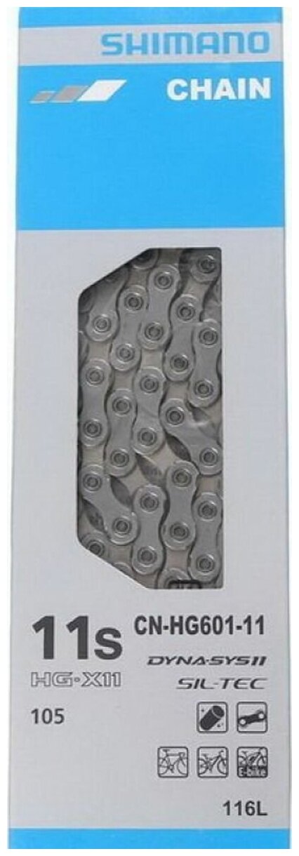 Цепь Shimano HG601, 11ск, 116 звеньев, 1 соединительный штифт (пин), ROAD/MTB/E-BIKE совместимая информация: