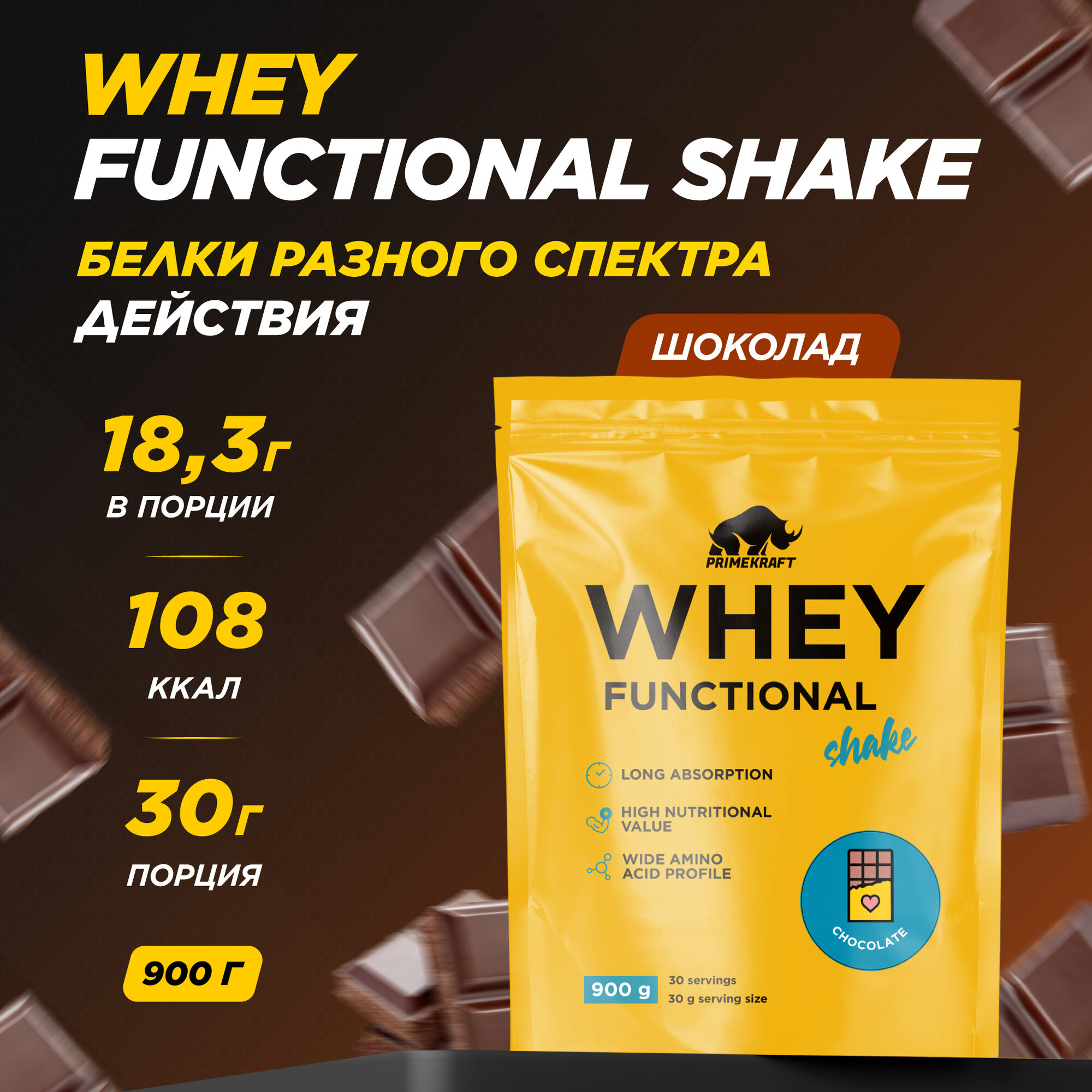 Протеин сывороточный PRIMEKRAFT Whey Functional Shake, Шоколад, 900 гр, дой пак информация: