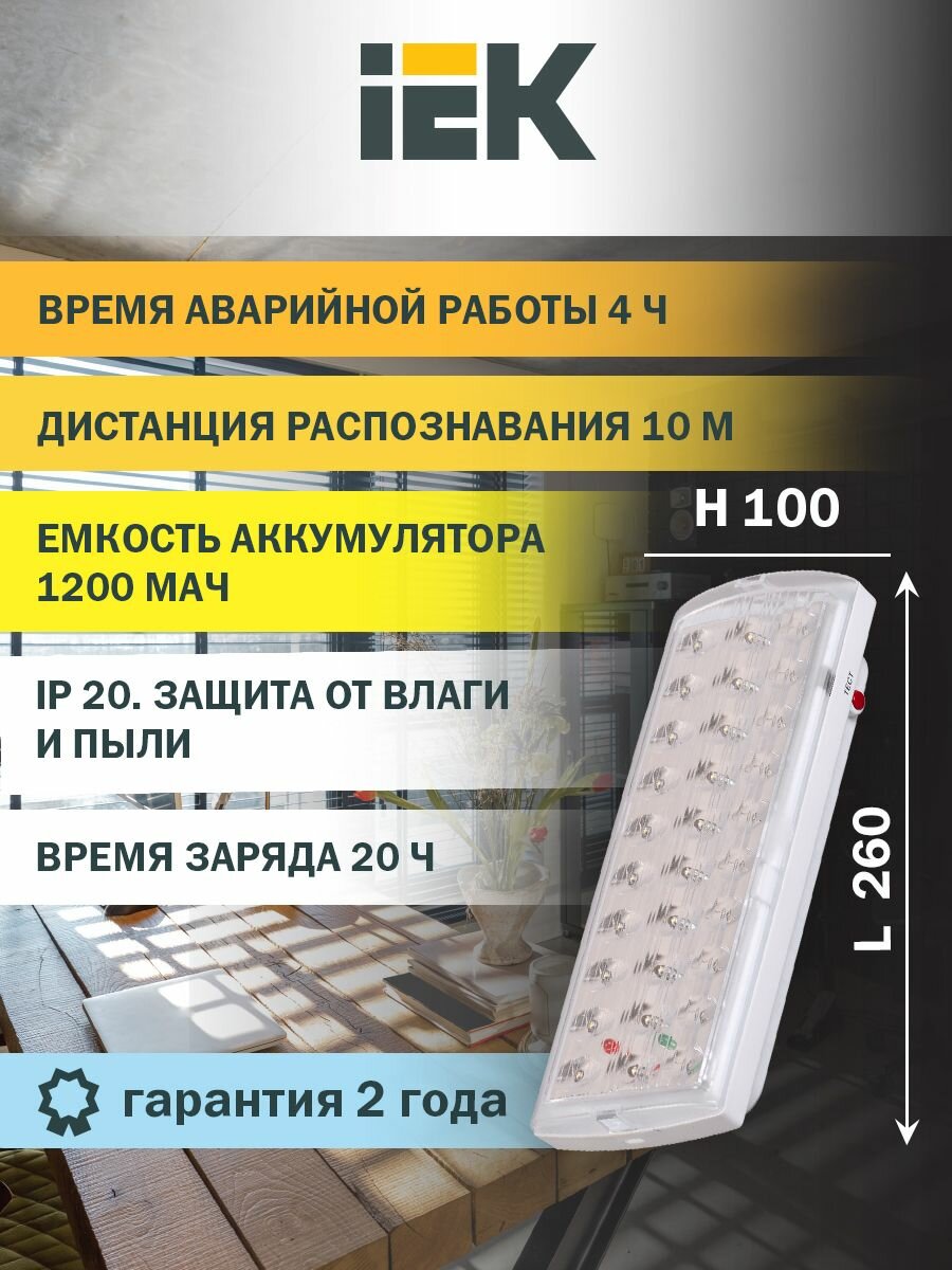 Светильник аварийный ДПА 2101 непостоянного действия 30LED 4ч IP20 IEK информация: