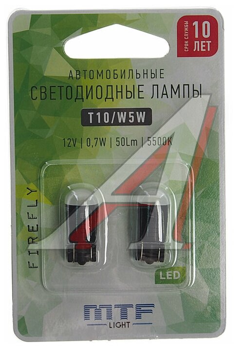 Светодиодная автолампа MTF Light серия FIREFLY, W5W/T10, 12В, 0.7Вт, 5500К / 2 шт информация: