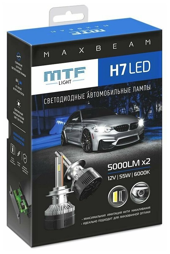Светодиодные лампы MTF Light, серия MaxBeam, H7, 12V, 55W, 5000lm, 6000K информация: