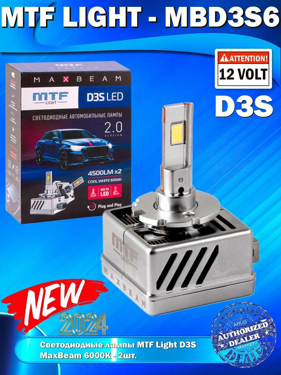 10 цен на Светодиодные лампы MTF Light, серия MaxBeam, D3S, 42V, 35W, 4500lm, 6000K, кулер, комплект.