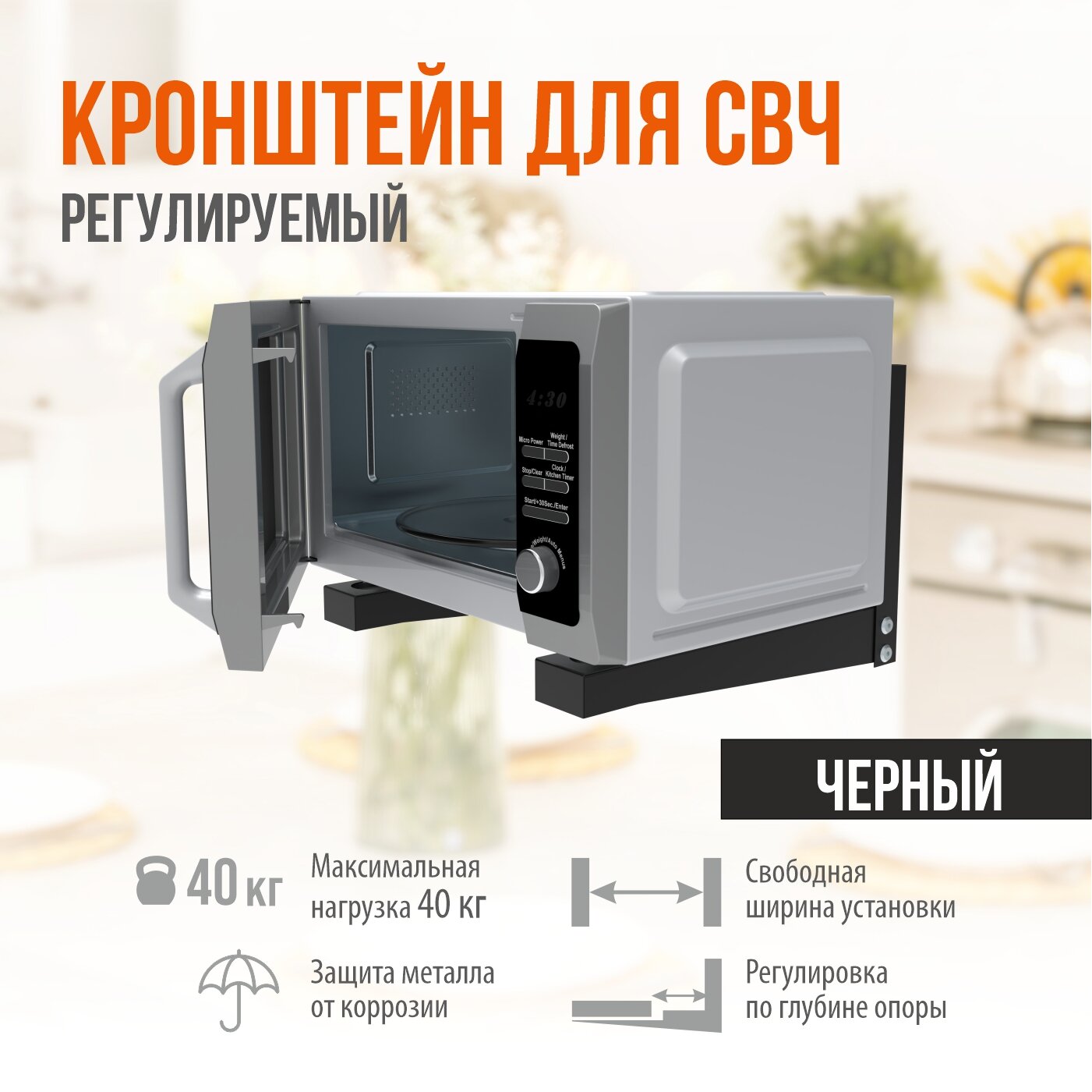 Кронштейн для микроволновой печи, стальной, максимальный вес до 35 кг