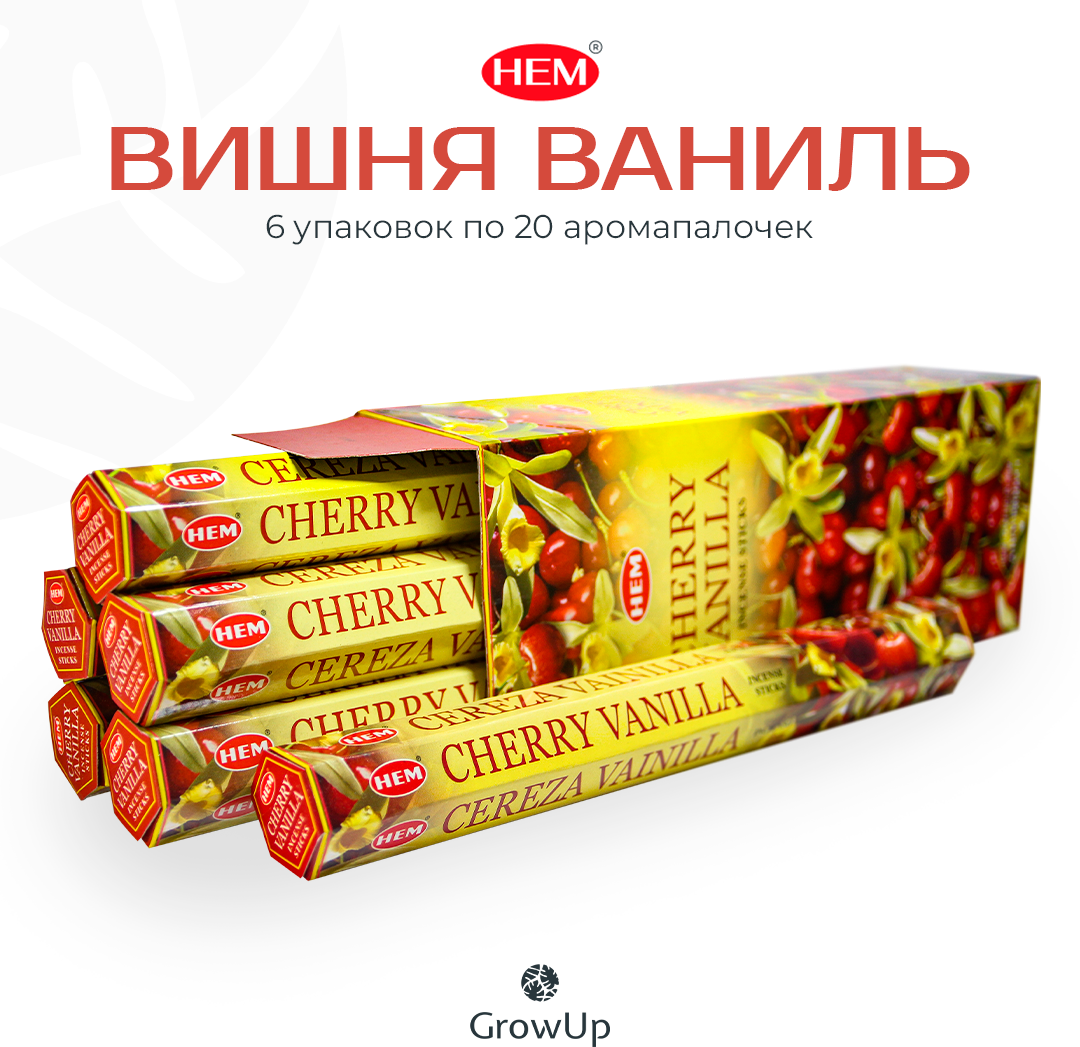 10 цен на Набор HEM Вишня Ваниль - 6 упаковок по 20 шт - ароматические благовония, палочки, Cherry Vanilla - Hexa ХЕМ