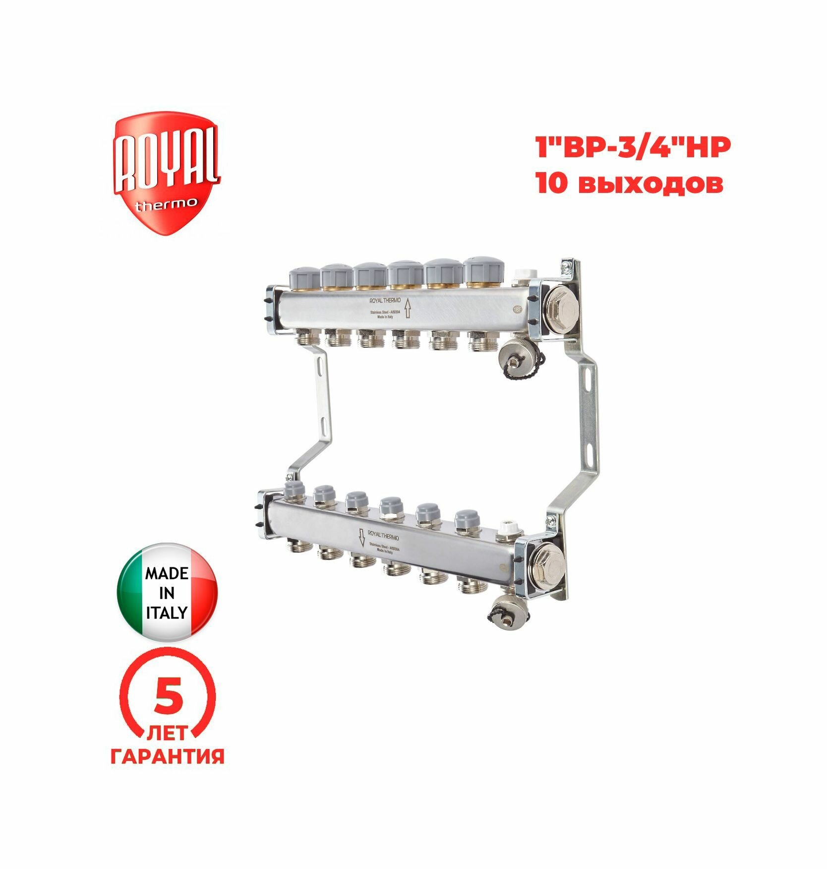Коллекторная группа Royal Thermo в сборе универсальная 1"ВР-3/4"НР, 10 выходов