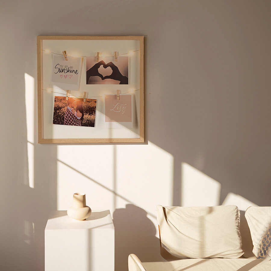 10 цен на Рамка для фотографий с подсветкой Everyday 38х38см, белая, натуральное дерево, МДФ, бумага, дерево