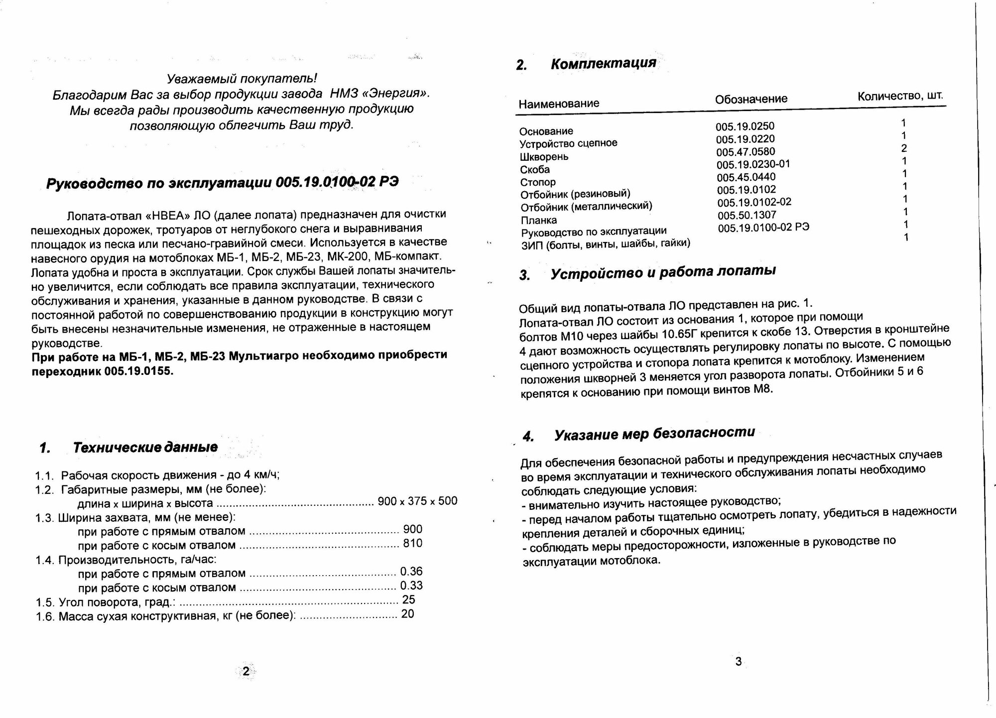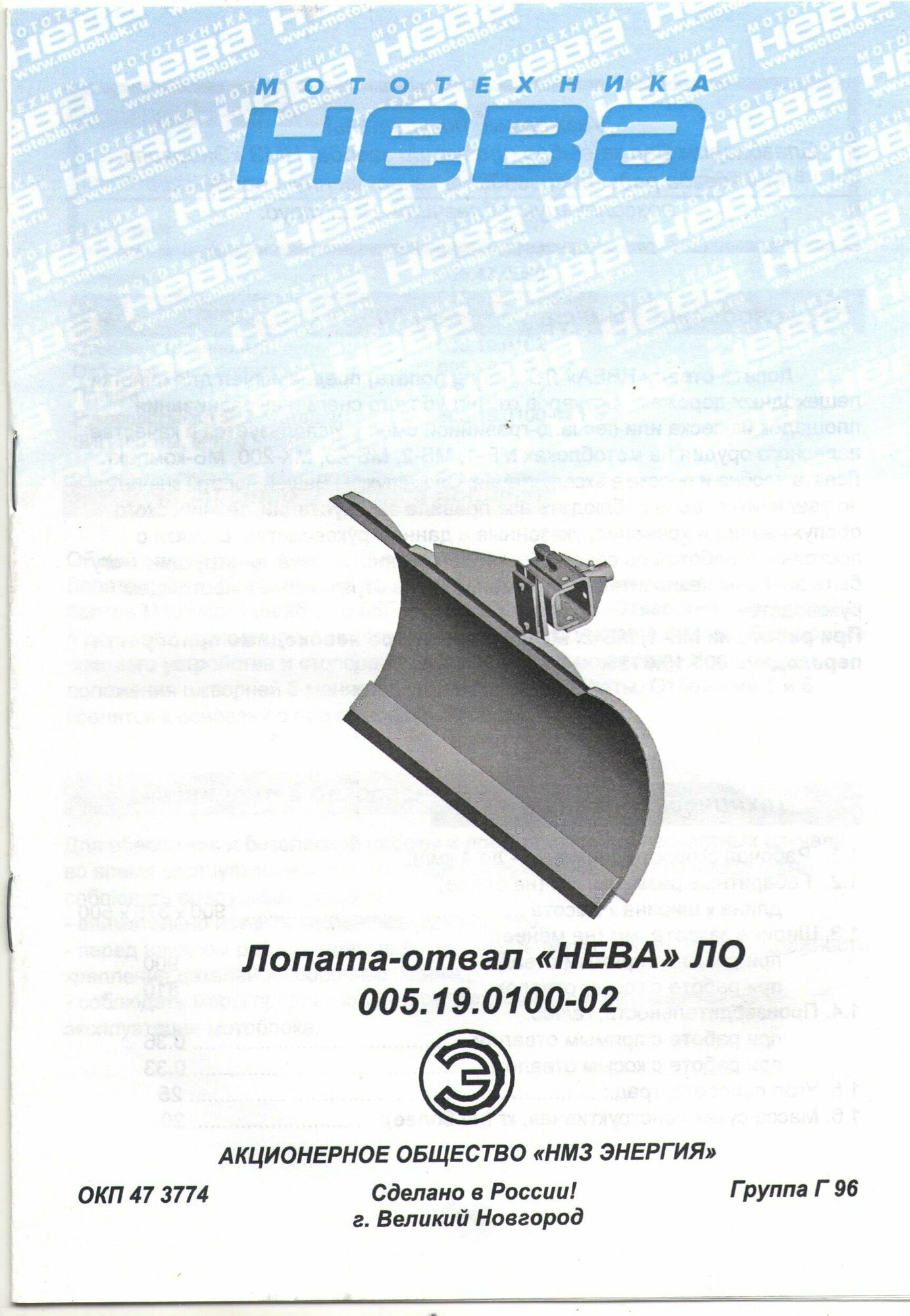 Лопата-отвал "Нева" ЛО 005.19.0100-02 информация: