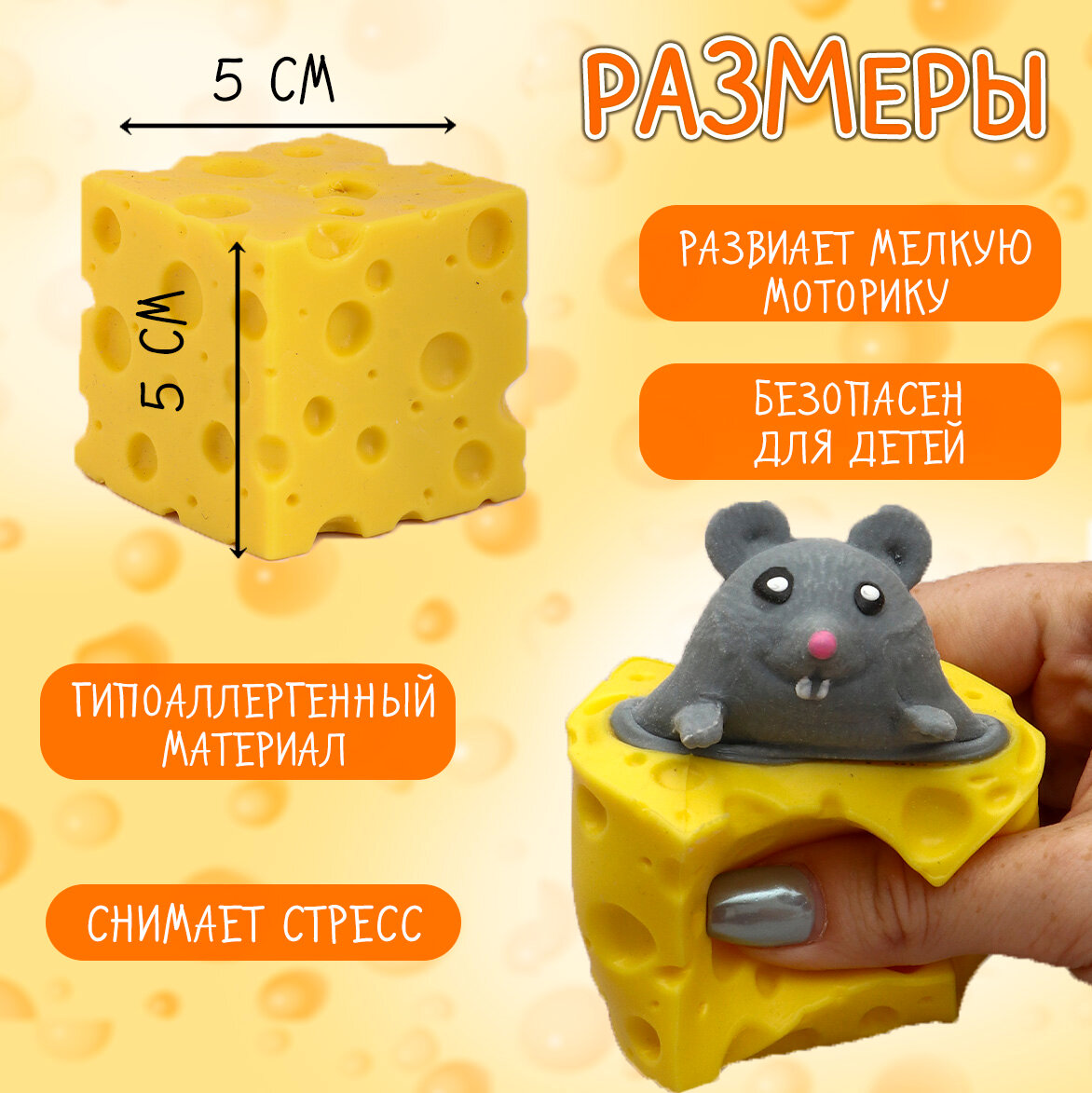 Игрушка антистресс мялка Фуфлик Сыр с мышкой серой, сквиш Эврика подарок девочке, мальчику подарок 23 февраля, 8 марта информация: