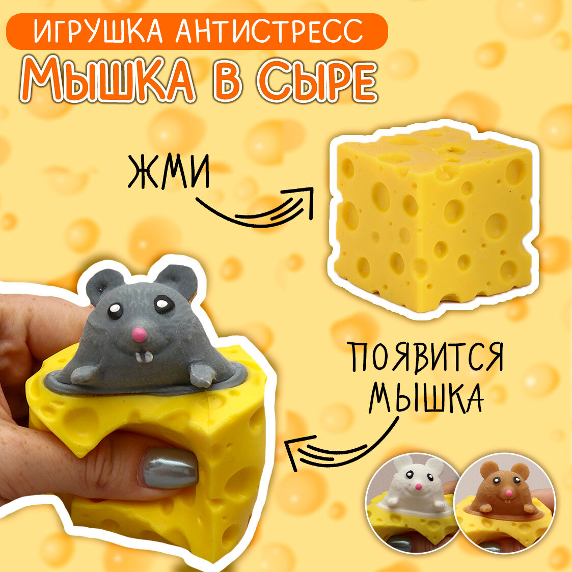 10 цен на Игрушка антистресс мялка Фуфлик Сыр с мышкой серой, сквиш Эврика подарок девочке, мальчику подарок 23 февраля, 8 марта