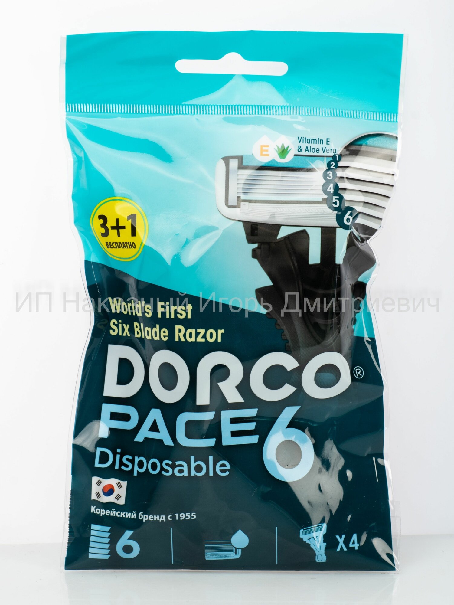 Одноразовый бритвенный станок Dorco Pace 6 (одноразовый) с витамином E и алоэ