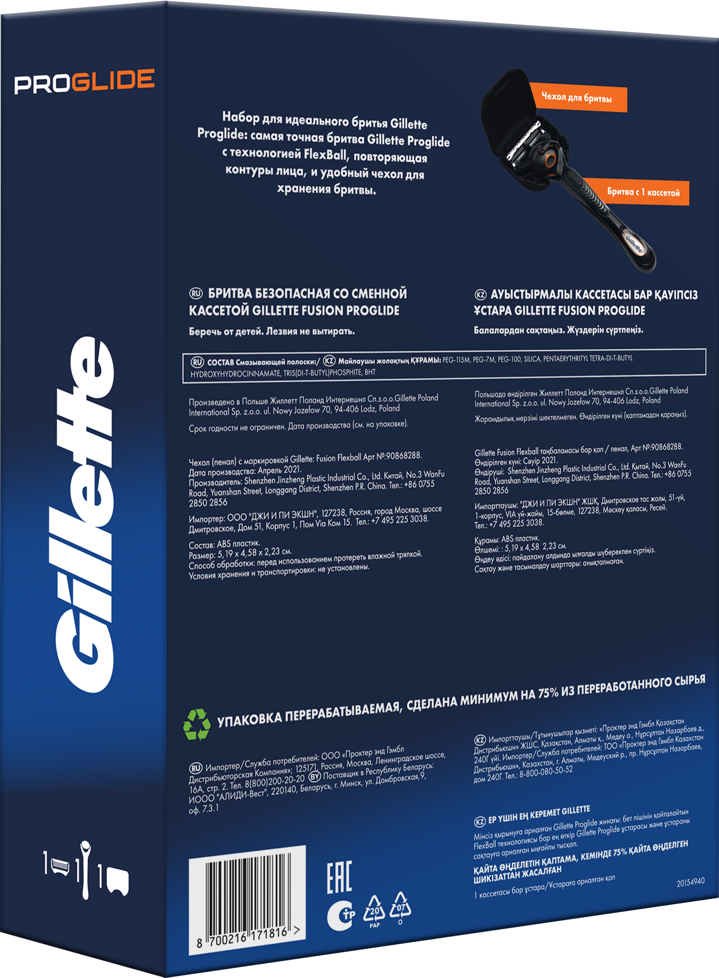 Набор Gillette ProGlide с чехлом для бритвы информация: